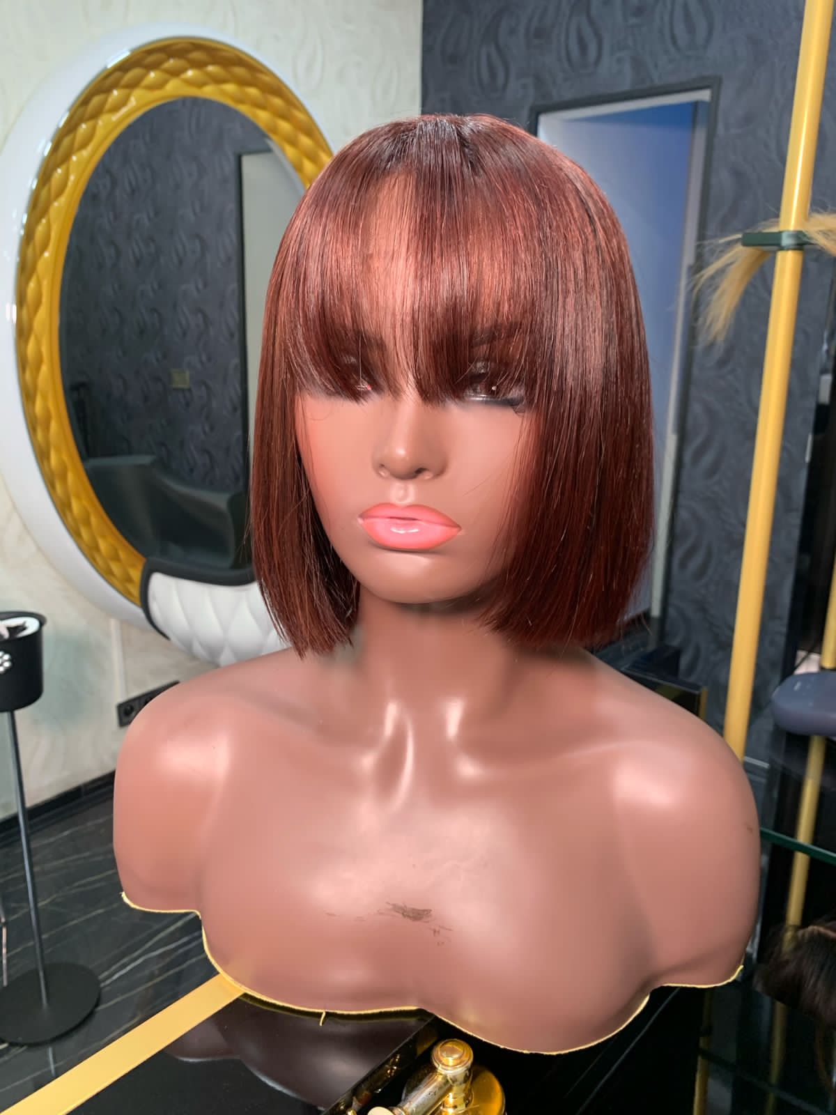 La Remy Auburn est un bob Lisse à frange avec coloration Modèle similaire: Hair, Copper, Chesnut.