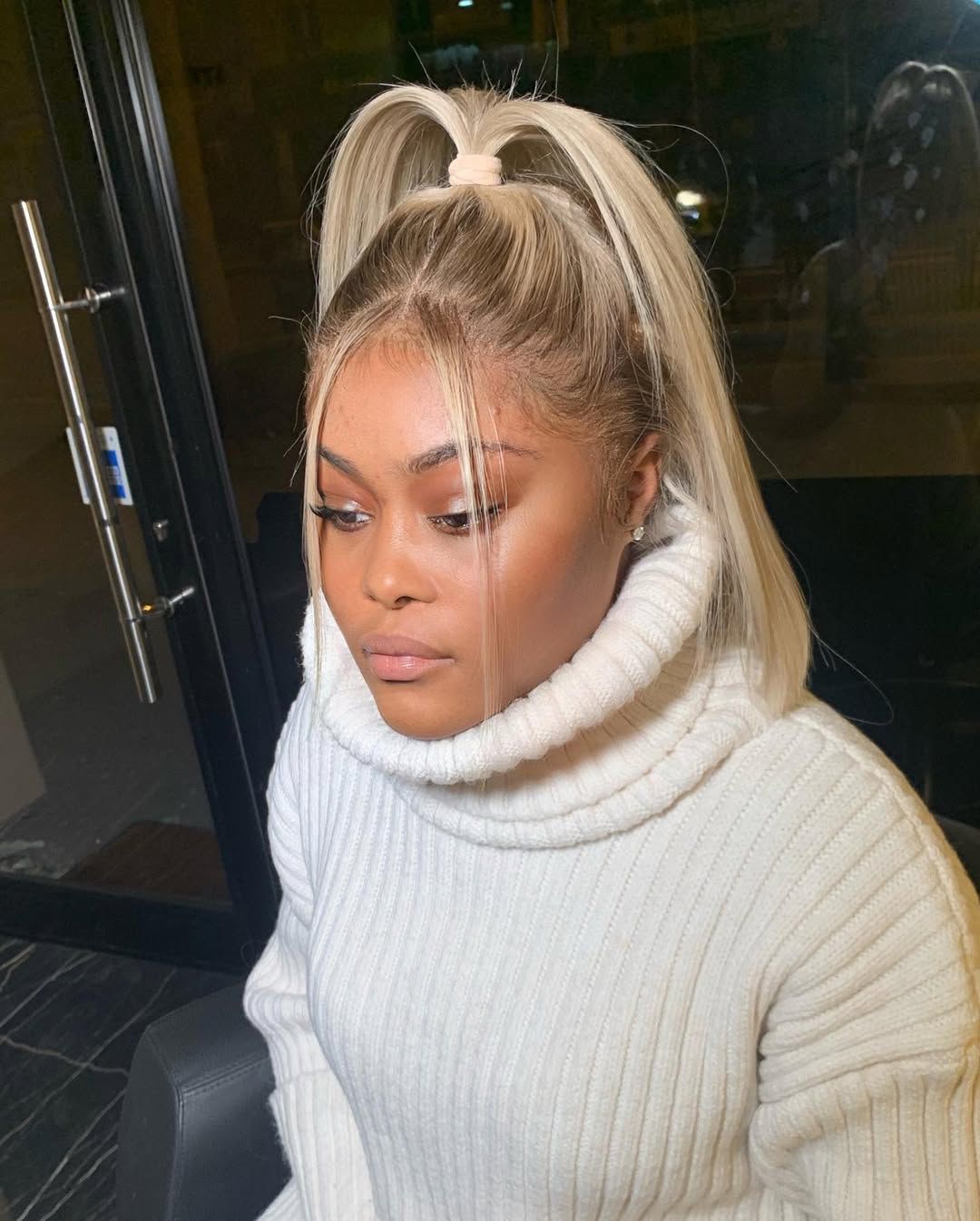 La Obstinée est un bob Lisse blond avec coloration Modèle similaire: Khloe K, Imany, Suky Baby, Boss Lady