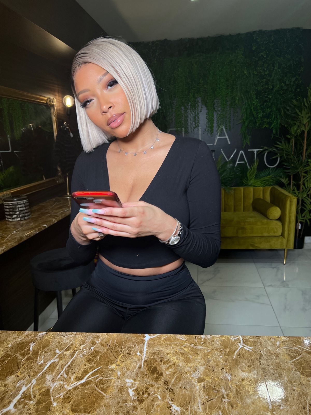 La Boss Lady est un bob Lisse blond avec coloration Modèle similaire: Khloe K, Imany, Suky Baby, Obstinée