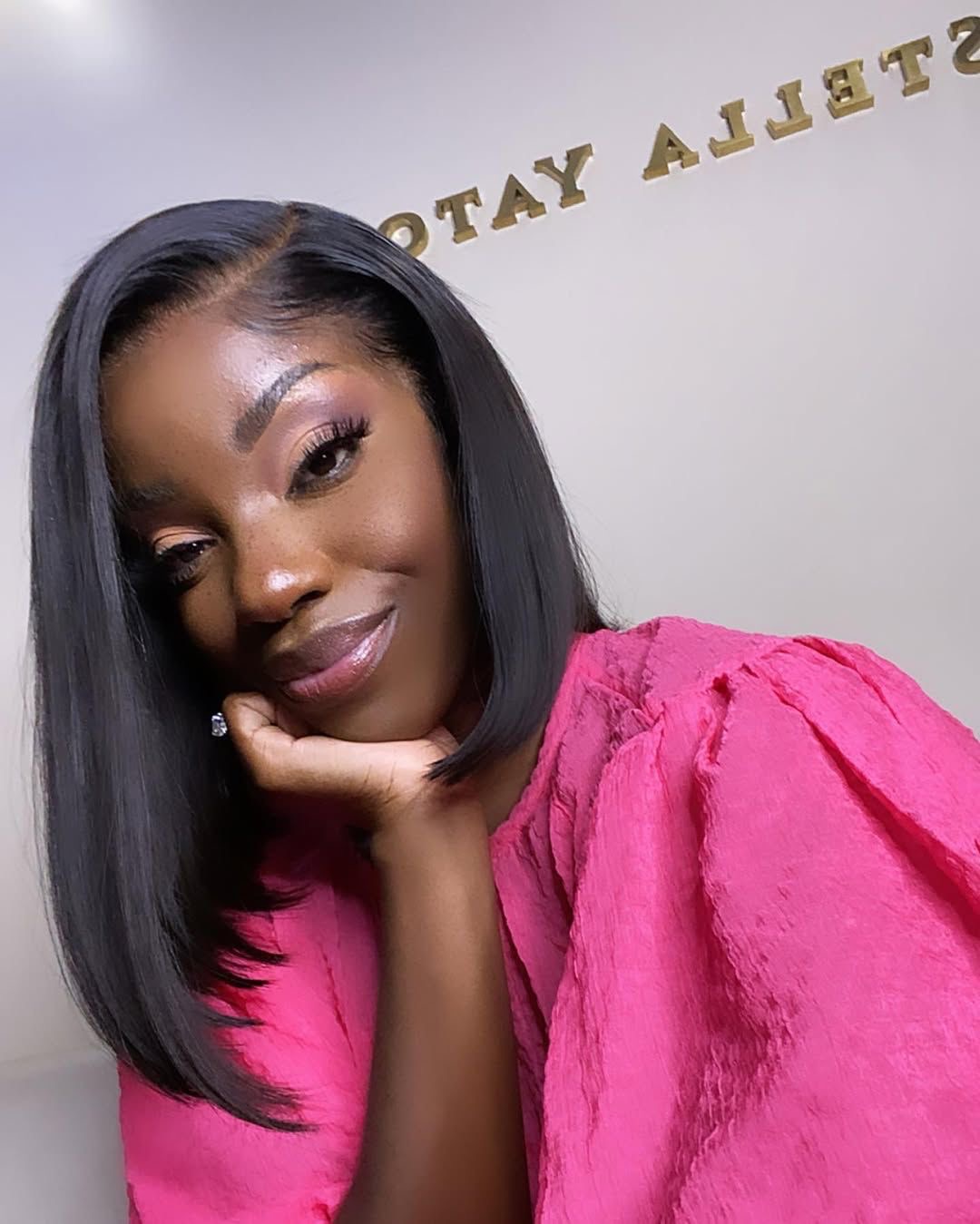 La Miss Brown est un bob Lisse coloré avec une raie au milieu. Retrouvez le modèle similaire, Miss Dior, en noir.