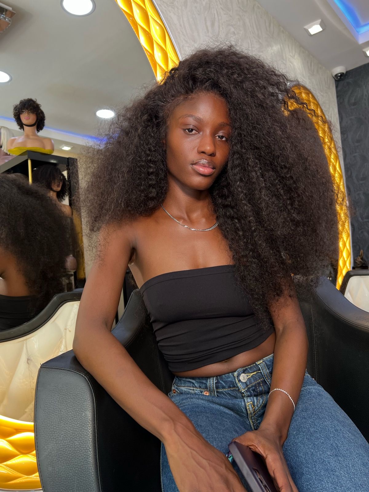 Les mèches utilisées sont de type Coarse curly, avec une densité par défaut de 3 paquets, assurant un volume généreux, équilibré et parfaitement adapté aux looks les plus sophistiqués.